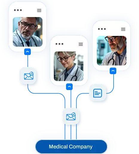 We design smart communication pathways that smoothly guide doctors through every stage—from first contact to education and interaction with medical representatives.