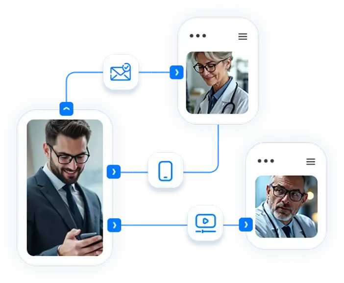 Seamlessly engage with healthcare professionals via phone, email, video calls, and SMS. Determine the most effective channel for every interaction to maximize impact.